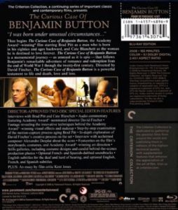- Interviews with Brad Pitt and Cate Blanchett - Audio Commentary Featuring Academy Award-nominated Director David Fincher - Footage Revealing the Innovative Techniques Behind the Academy Award-winning visual effects and Makeup - Step-by-Step examination of the Motion-capture process aging Brad Pitt - In-depth Exploration of David Fincher's Creative Process on the Set - Interview with Acclaimed Composer Alexandre Desplat about the Score - Featurettes on the film's Storyboards, Costumes, and Academy Award-winning art direction - Stills Galleries, Including Costume Designs and Candid behind-the-scenes Production Photos - An Essay by Film Critic Kent Jones |