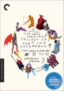 New digital restorations of all three films, with uncompressed monaural soundtracks New visual essays by film scholars Patrick Rumble and Tony Rayns, on The Decameron and Arabian Nights, respectively New interviews with production designer Dante Ferretti, composer Ennio Morricone, and film scholar Sam Rohdie Introduction to Arabian Nights by director Pier Paolo Pasolini The Lost Body of Alibech (2005), a documentary by Roberto Chiesi about a lost sequence from The Decameron The Secret Humiliation of Chaucer (2006), a documentary by Chiesi about The Canterbury Tales Via Pasolini (2005), a documentary featuring archival footage of Pasolini discussing his views on language, film, and modern society Pasolini and the Form of the City (1974), a documentary by Pasolini and Paolo Brunatto about the Italian cities Orte and Sabaudia Deleted scenes from Arabian Nights Pasolini-approved English-dubbed track for The Canterbury Tales Trailers New English subtitle translations PLUS: A booklet featuring essays by critic Colin MacCabe; Pasolini’s 1975 statement “Trilogy of Life Rejected”; excerpts from Pasolini’s Berlin Film Festival press conference for The Canterbury Tales; and a report from the set of Arabian Nights by critic Gideon Bachmann |
