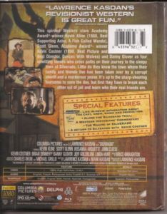 Following in the footsteps of Dr. Stragenlove or: How I Learned to Stop Worrying and Love the Bomb, Midnight Express, and A River Runs Through It, Silverado arrives on Blu-ray courtesy of Sony Pictures as an attractive DigiBook release. Contained within its full color, glossy pages are plenty of photographs; an introduction to the film; production notes; theatrical poster reprints; and cast biographies for Kevin Kline, Scott Glenn, Rosanna Arquette, John Cleese, Kevin Costner, Brian Dennehy, Danny Glover, Jeff Goldblum, and Linda Hunt. As to the on-disc supplements, things get started with Along the 'Silverado' Trail: A Western Historians' Commentary which features Frank Thompson, Paul Hutton, and Steve Aaron, historians all that come together to speak on "the last of the old style Western." They discuss the genre's ability to cheat death over its history, the varied styles within the genre, the cast, shooting locations, costumes, and more. What's truly great about this track is that it's not the usual pat-on-the-back style commentary. The participants don't always agree, don't always say wholly positive things about the film, and show a broad depth of knowledge but don't necessarily flaunt it. It makes for a must-listen commentary for Western fans. A Return to Silverado with Kevin Costner (480p, 21:01) features the actor recalling his love of Westerns, the character he played in Silverado, the quality of the script, the work of his fellow actors, and more. The Making of 'Silverado' (480p, 37:01) is a solid piece that covers the expected angles, showcasing behind-the-scenes footage and retrospective interviews with cast and crew. Silverado also represents the debut (alongside The Quick and the Dead) of Sony's "MovieIQ" that offers live, up-to-date details about every scene, including cast and crew filmographies and biographies, soundtrack listings, and more. Also included are 1080p trailers for The Da Vinci Code, Casino Royale, Ghostbusters, A River Runs Through It, and Damages: Season One. |