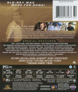 • Inside The Man With The Golden Gun - An Original Documentary• Double-O Stuntmen: A Look At the Greatest Stunts and Stuntmen In the Bond Films• Audio Commentary Featuring Sir Roger Moore• Audio Commentary Featuring Director Guy Hamilton and Members of the Cast and Crew• Guy Hamilton: The Director Speaks (05:23)• Classified: MI6 Vault• The Russell Harty Show 1974 with Roger Moore & Hervé Villechaize (03:01)• On Location With The Man With The Golden Gun (01:32)• Girls Fighting (03:31)• American Thrill Show Stunt Film (05:18)• 007 Mission Control007-The Gun Barrel (00:48)007-Titles with and without Text (04:68)Saida (03:30) Andrea Anders-Arm Twisting (04:07), Golden Gun Foreplay (00:40), The Unexpected (05:05), A Mistress Cannot Serve Two Masters (04:42)Goodnight-Our Girl in Hong Kong (01:09), Hard To Get Act (02:06), The Unexpected (05:09), Your Turn Will Come (00:58), Goodnight-A Mistress Cannot Serve Two Masters (04:42), Locked In A Boot (01:56), Lunch (03:28), What A Knockout!, Goodnight-Escape (05:00), Goodnight, Goodnight (01:39)Chew Me (00:59)• "M"-Bond's Endless Enemies (03:13), Crisis Conference (03:24), Shut Up, Q! (01:27), Goodnight, Goodnight (01:41)• Miss Moneypenny (00:56)• "Q"-Tracing the Bullet (01:32), Crisis Conference (03:24), Shut Up, Q! (02:25)• Lt. Hip-Bottoms Up (02:02), Crisis Conference (03:24), Quite Titillating (00:35), Giving Hip's Nieces A Lift (00:34), Stand Back, Girls (01:49), A Mistress Cannot Serve Two Masters (03:40), Locked In A Boot (01:54), Shut Up, Q! (01:27)• J.W. Pepper-You Just Try That In My Bayou (00:14), Elephants? We're Democrats! (01:47), Car Chase (05:18), A Car With Sprouted Wings (04:33)• Cha and Nara-Giving Hip's Nieces A Lift (00:33, Stand Back, Girls (01:49)• Scaramanga-Target Practice (07:29), Bottoms Up (02:01), Golden Gun Foreplay (00:42), Quite Titillating (00:46), Hai Fat's Resignation (01:57), A Mistress Cannot Serve Two Masters (03:43), Locked In A Boot (01:55), Car Chase (05:39), A Car With Sprouted Wings (03:33), Seaplane Approach (02:52), Personal Welcome (01:35), The Real Golden Gun (02:43), Lunch (03:28), Duel (10:30)• Nick Nack-Target Practice (07:29), Bottoms Up (02:01), Grisly Land (02:41), A Mistress Cannot Serve Two Masters (03:43, Locked In A Boot (01:55), Car Chase (05:39), A Car With Sprouted Wings (03:33), Personal Welcome (01:35), Duel (10:30), Showdown (02:23)• Hai Fat-He's Good - Even By My Standards (01:15), Quite Titalling (00:46), Hai Fat's Resignation (01:57)• Chula-Bond Goes Back To School (01:41), Mexican Screw-Off (04:40)• Kra-Interest In Goodnight (00:31), Kra-What A Knockout! (00:29) and more! |
