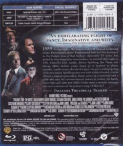 Four directors collaborated to remake four episodes of the popular television series 'The Twilight Zone' for this movie. The episodes are updated slightly and in color (the television show was in black-and-white), but very true to the originals, where eerie and disturbing situations gradually spin out of control. "A Quality of Mercy", "Kick the Can", "It's a Good Life", and "Nightmare at 20,000 Feet". |