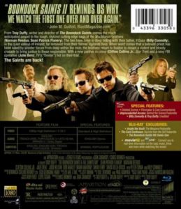 Deleted Scenes Filmmaker And Cast Commentary Unprecedented Access: Behind the Scenes Billy Connolly and Troy Duffy: Unedited Inside the Vault: The Weapons Featurette The Cast Confesses: Secrets from the Set Featurette The Boondock Saints Hit Comic-Con MovieIQ