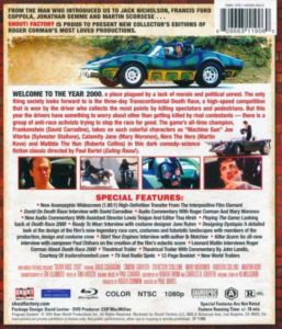 Interview With David Carradine Audio Commentary With Cast And Crew Looking Back At Death Race 2000 Interview With Costume Designer Detailed Look At tHe Design Of The Now-Legend Race Cars Interview With Author Ib Melchior All New Interview With Composer Leonard Maltin Interviews Roger Corman Theatrical Trailer Theatrical Trailer With Commentary TV Spots And Radio Spots 12-Page Booklet New World Trailers