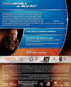 Seminary student Michael Kovak (Colin O'Donoghue) reluctantly attends exorcism school at the Vatican. While he’s in Rome, Michael meets an unorthodox priest, Father Lucas (Anthony Hopkins), who introduces him to the darker side of his faith, uncovering the devil’s reach even to one of the holiest places on Earth. |