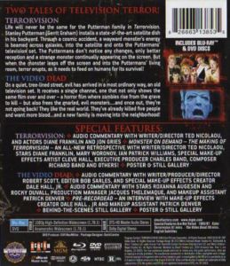 Terrorvision Audio Commentary with Writer/director Ted Nicolaou, and Actors Diane Franklin and Jon Gries Monster on Demand The Making of Terrorvision An All-new Retrospective with Writer/director Ted Nicolaou, Stars Diane Franklin, Mary Woronov, Ian Patrick Williams, Special Make-up Effects Artist Cleve Hall, Executive Producer Charles Band, Composer Richard Band and Others! Poster & Still Gallery The Video Dead Audio Commentary with Writer/producer/director Robert Scott, Editor Bob Sarles, and Special Make-up Effects Creator Dale Hall, Jr. Audio Commentary with Stars Roxanna Augesen and Rocky Duvall, Production Manager Jacques Thelemaque, and Makeup Assistant Patrick Denver Pre-recordead - an Interview with Make-up Effects Creator Dale Hall , Jr and Makeup Assistant Patrick Denver Behind-the-scenes Still Gallery Poster & Still Gallery |